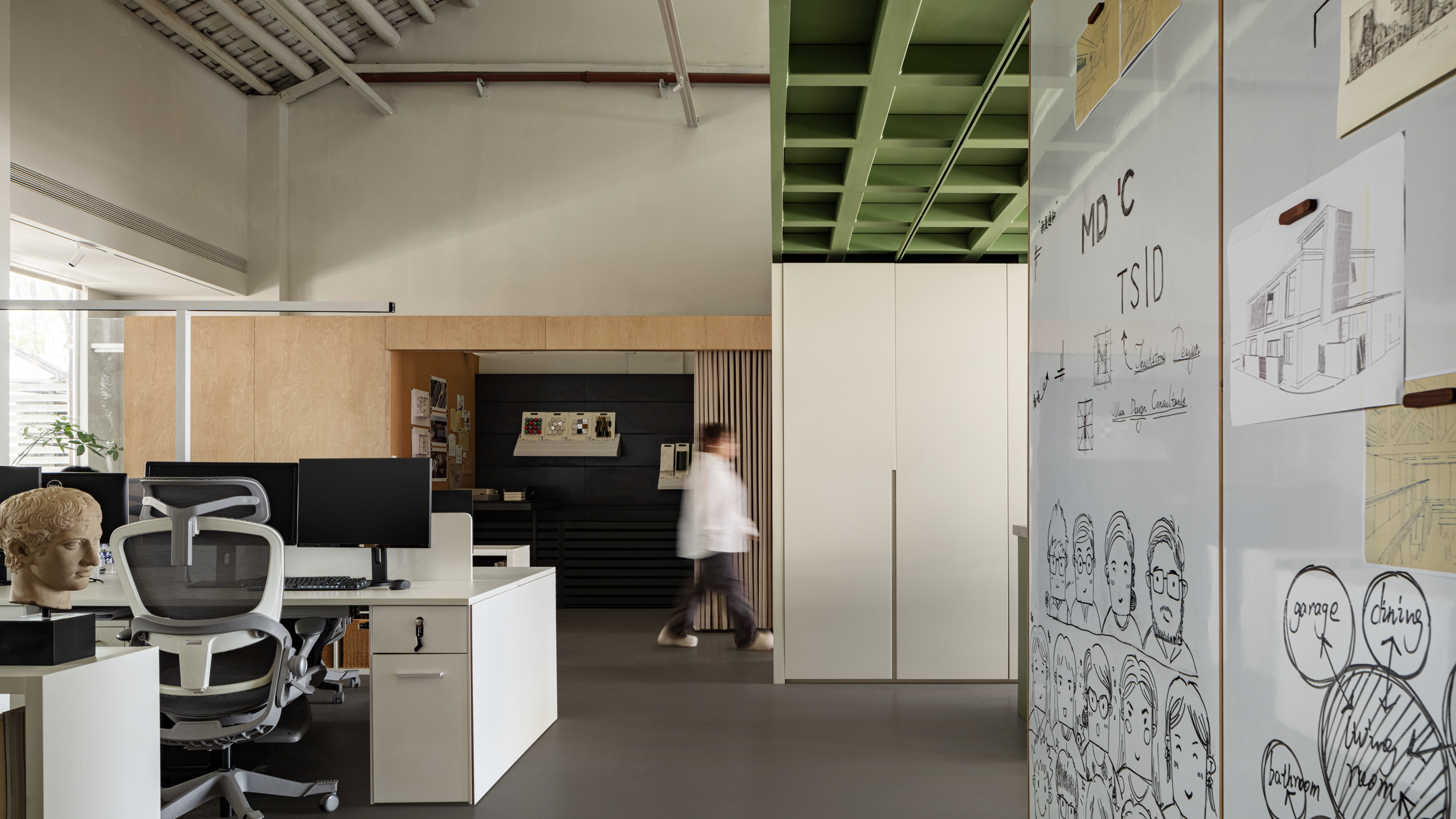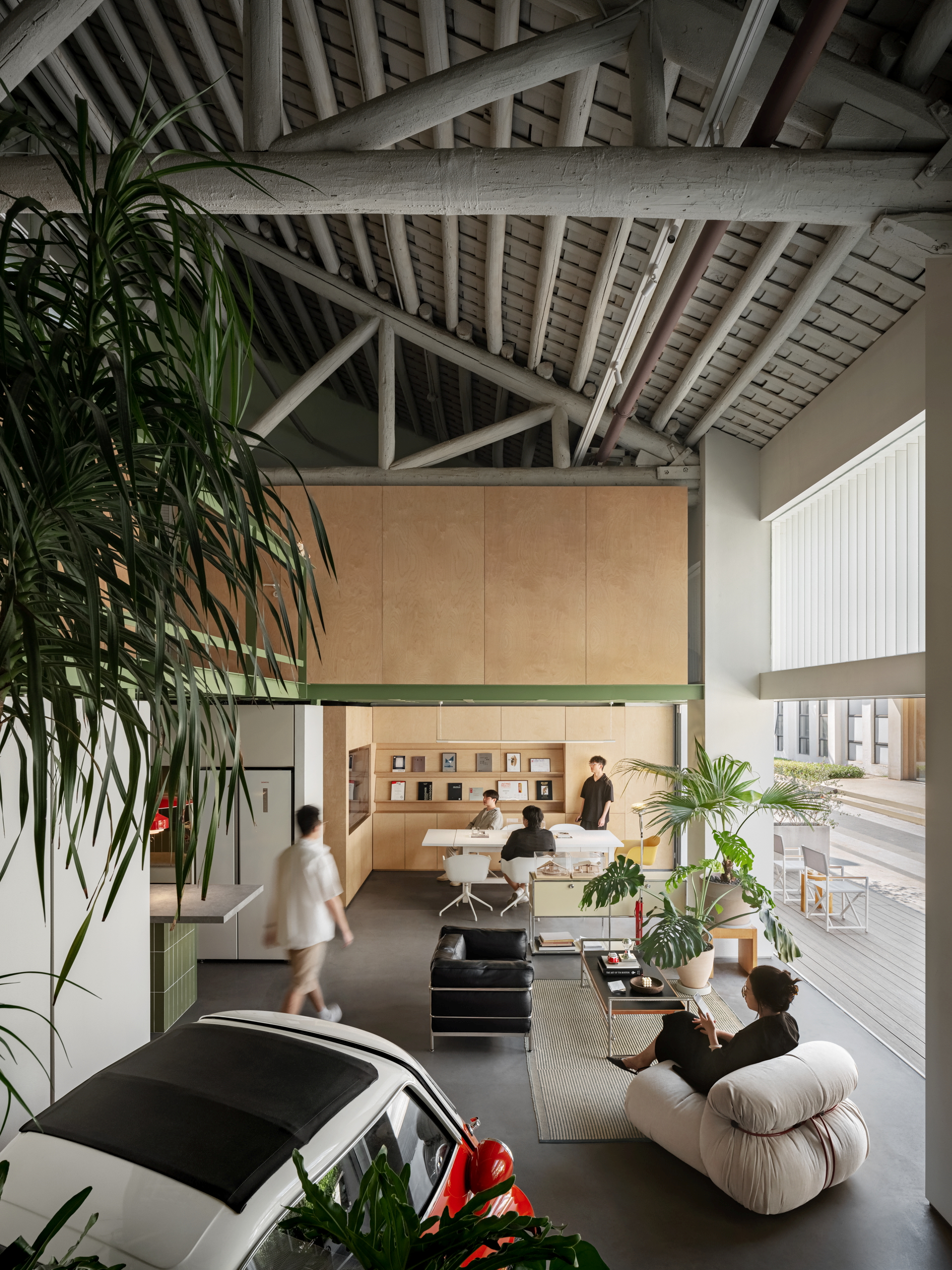 TSD Studio aims to integrate demanding work with leisurely living by redefining the relationships between functional office spaces and breaking away from structural rigidity. The key design challenge lies in achieving a seamless integration of heritage and innovation while preserving the original architectural framework. This approach allows the workspace to coexist harmoniously with the community and nature, thereby blurring the boundaries between professional duties and social engagement.